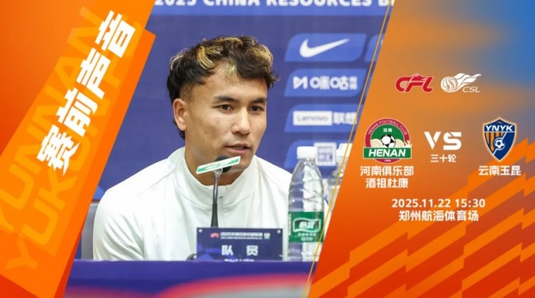 北京本事2025年11月22日15点30分,郑州帆海通顺场,云南玉昆将与河南俱乐部酒祖杜康进行中超联赛第三十轮比赛。