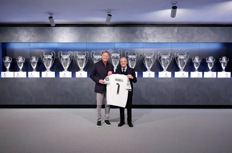 今天,皇马主席弗洛伦蒂诺与NFL总裁罗杰·古德尔会面并互赠礼物,弗洛伦蒂诺获赠橄榄球,古德尔获赠皇马1号球衣以及伯纳乌模子。