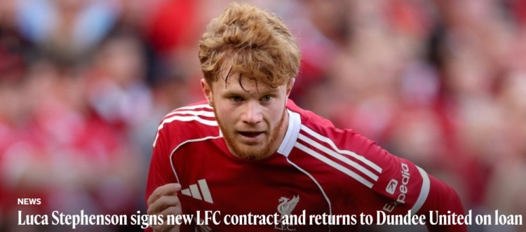 8月15日讯 利物浦官方通知和21岁中场卢卡-斯蒂芬森(Luca Stephenson)续约,然后将其再次外租至苏超的邓迪联,租期一个赛季。