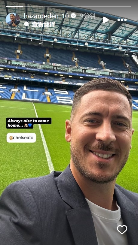 他归来了!阿扎尔重返斯坦福桥晒照:回家的嗅觉老是很棒