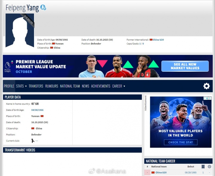 笔据广东女篮的官方公告,女篮队员杨力维、杨舒予的父亲,前男足国青队、云南足球队球员杨飞鹏于昨日凌晨死一火,享年59岁。杨飞鹏降生于1966年8月4日,曾于上世纪80年代入选中国国青队过问1985年苏联世青赛,在小组赛与巴拉圭的比赛中替补出场。那届国青队最终在八强战被人苏联1-0淘汰,是国青历史上的最佳获利。同庚早些时辰,杨飞鹏还随国青取得了亚青赛的冠军(出场纪录未知)。