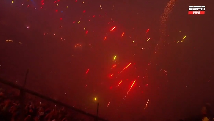 次回合,竞技队的主场氛围让全天下为之嘉赞。尽管本场比赛最终比分是0-0,然而总统庇隆球场超燃的画面,硝烟足够堪比构兵,能见度不及5m,极其颤动。