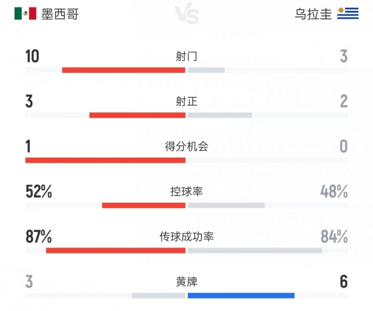 此役墨西哥射门10比3占据上风,不外两队齐莫得赢得进球,最终0-0抓手言和。