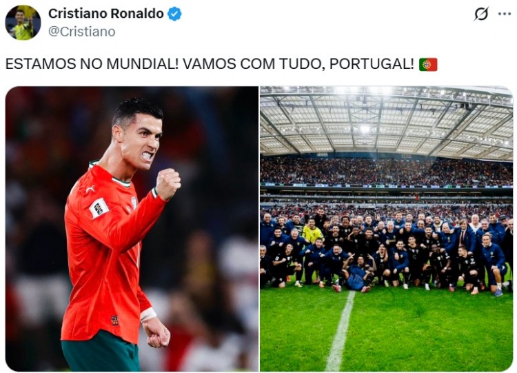 C罗社媒晒球队合影庆祝:咱们晋级全国杯了!加油,葡萄牙!