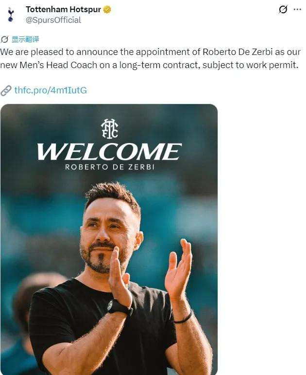 官方:热刺宣布任命德泽尔比为新主帅!
