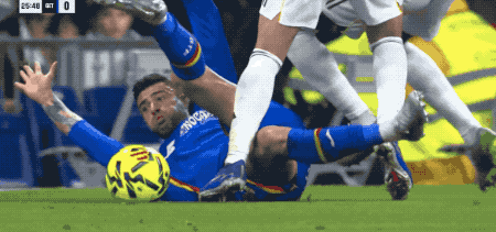 两分钟后,场上出现争议一幕,里科倒地后,吕迪格连续两次用膝盖撞击里科的面部,多名赫塔费球员围住裁判,表达不满。