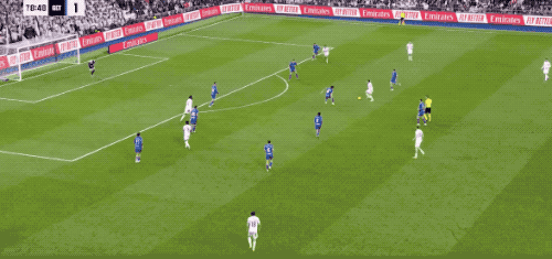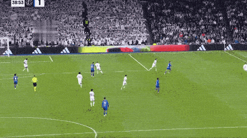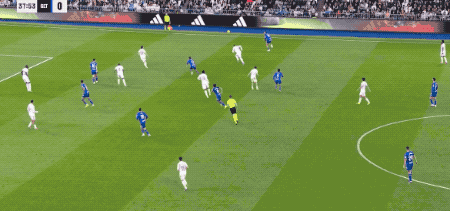 第39分钟,面对赫塔费的传中,吕迪格和琼阿梅尼连续头球解围,萨特里亚诺不等皮球落地,一记神奇的天外飞仙,皮球直挂死角。