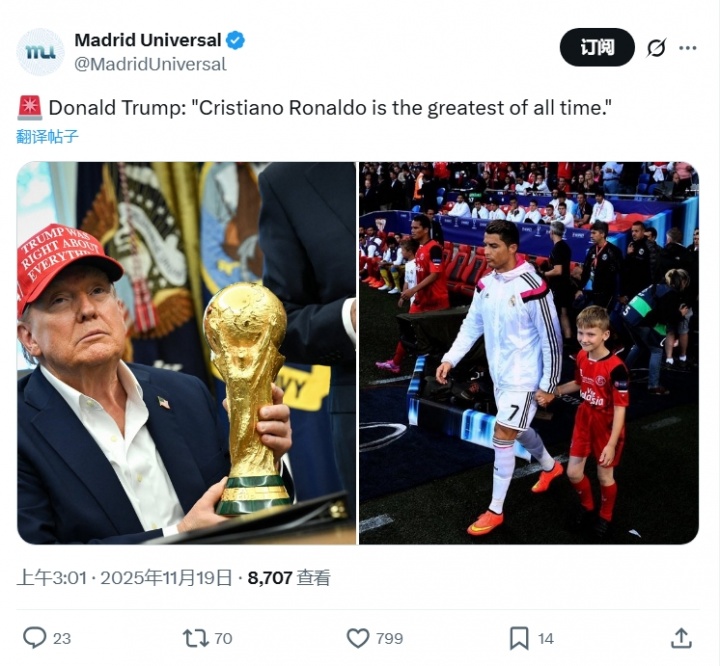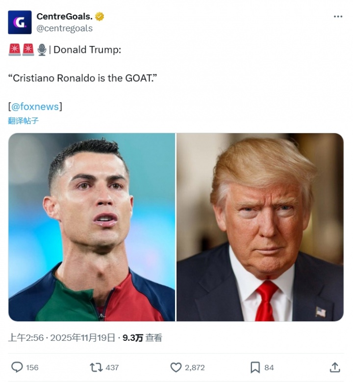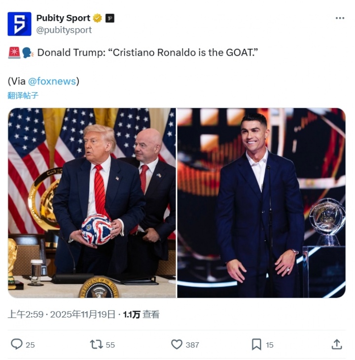 网传特朗普称C罗是历史最好,此音信暂无可靠源流说明