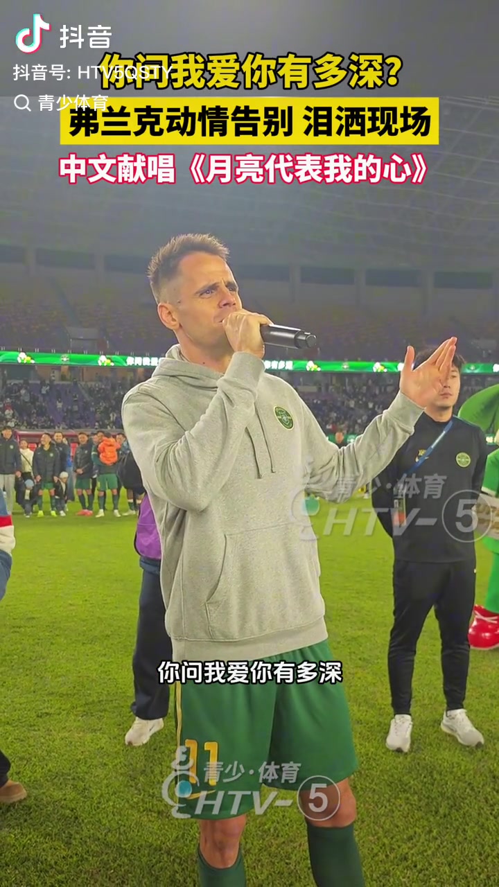 据“青少体育”报说念,弗兰克在告别典礼上用中语深情献唱《月亮代表我的心》,情到深处时动情落泪。告别典礼上,浙江队高层也向他奉上了一件印有弗兰克名字和数字140字样的追想球衣。