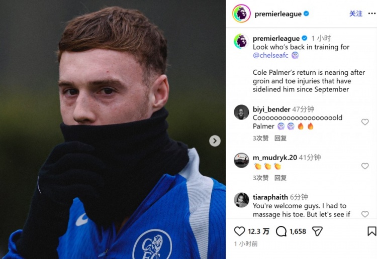 望望是谁回来了?!帕尔默进入切尔西本日施行,本赛季4场2球