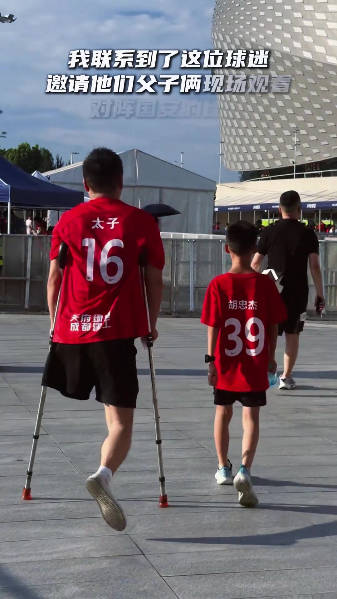 除了邀请这名残疾球迷和他的男儿不雅看比赛以外,蹇韬还为这对球迷父子扶持了礼物。