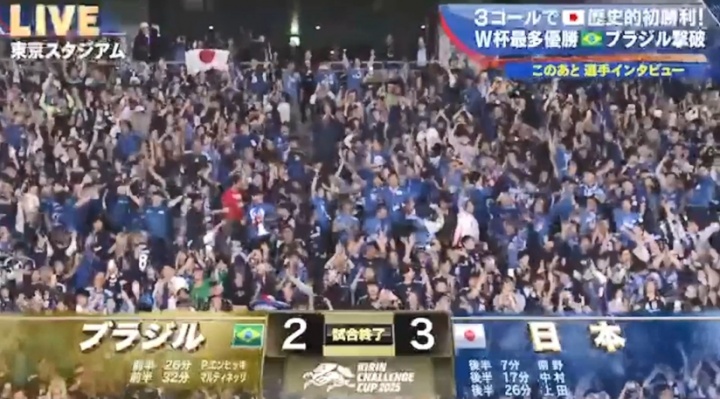 全场欢娱!日本让二追三逆转巴西,终场哨后现场不雅众爆发烧烈欣忭