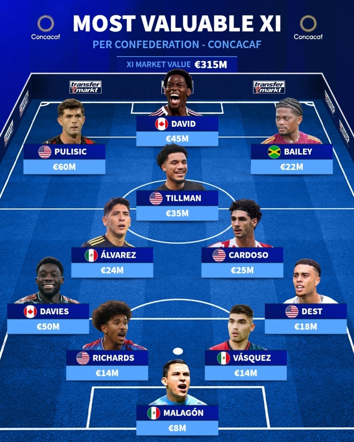 总身价3.15亿!中北好意思最贵阵:普利西奇领衔 戴维斯在列,好意思国5东谈主