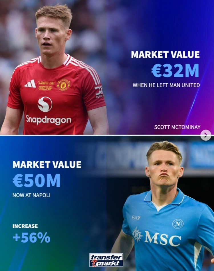 麦克托米奈(那不勒斯) 3200万欧→5000万欧,+56%