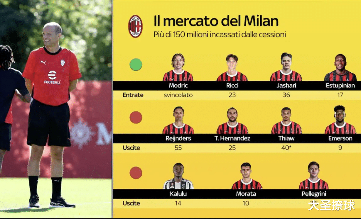 佳夫离队后, AC米兰夏窗转会收入冲破1.5亿欧元