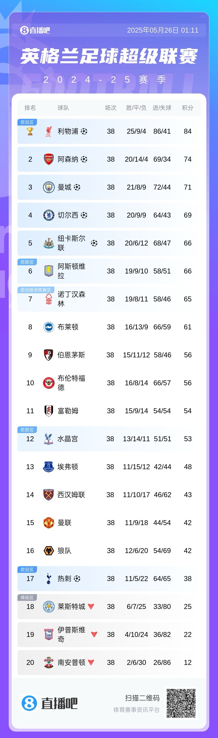 08月19日讯 25/26赛季英超首轮战罢,曼联主场0-1不敌阿森纳,首轮事后暂居第15。