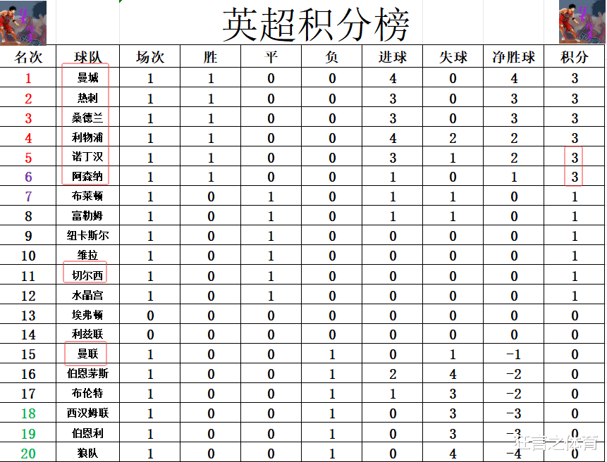 积分榜方面,阿森纳和诺丁汉丛林赢球后,当今 有6支球队获得开门红,曼城净胜球上风照旧位列榜首,诺丁汉丛林排在第5,阿森纳进球最少排在第6。切尔西在今夏世俱杯上阐扬很亮眼,打败了欧冠新科冠军巴黎圣日耳曼夺得世俱杯冠军,可是新赛季他们上来就爆冷丢分,在主场无力打败水晶宫,暂时排在第11。