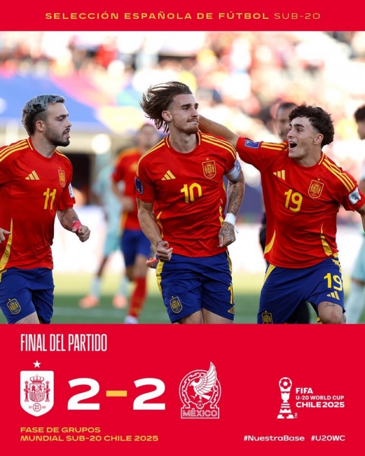 此役事后,西班牙1平1负积1分,名次世青赛C组终末一位,墨西哥则是2战都平积2分。