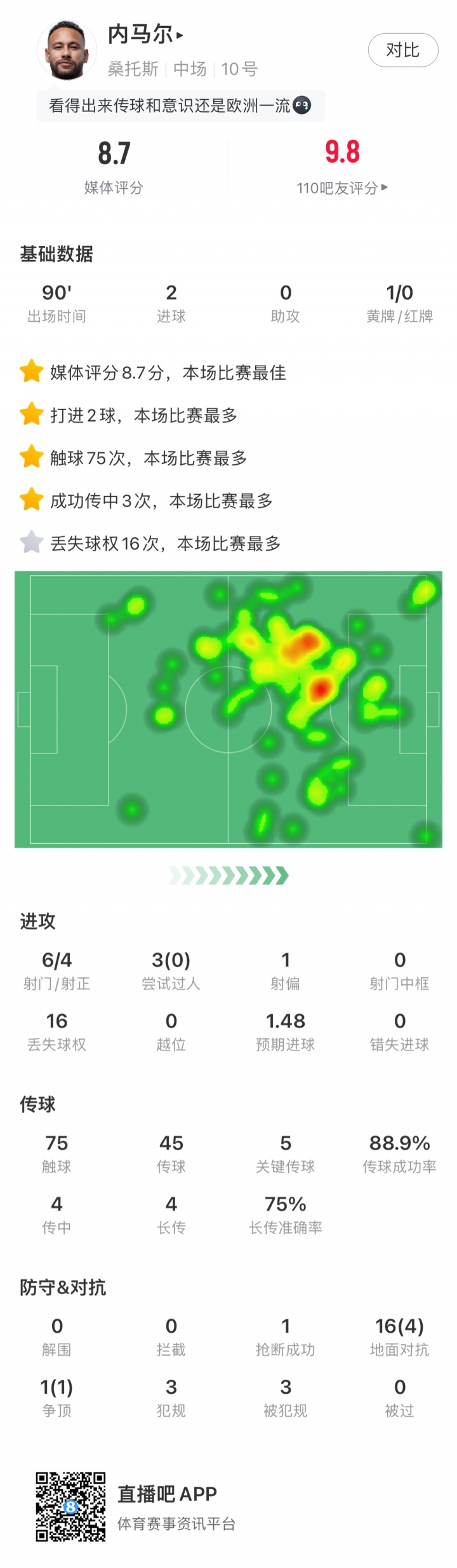 第80分钟,内马尔点射梅开二度,将比分锁定为3-1。