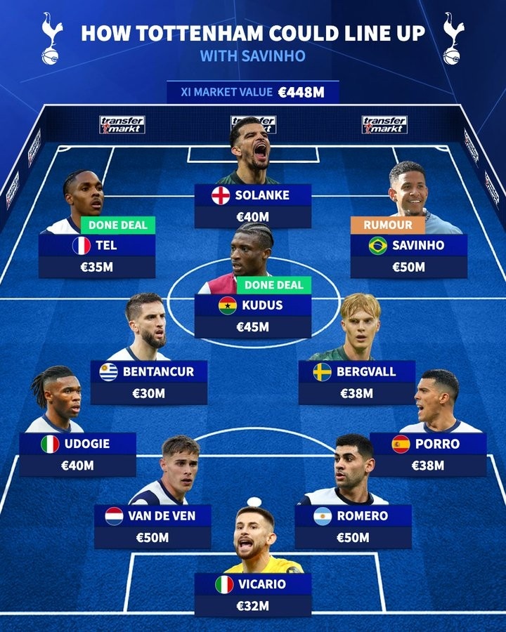 德转探究热刺新赛季威望:绯闻对象萨维尼奥在列