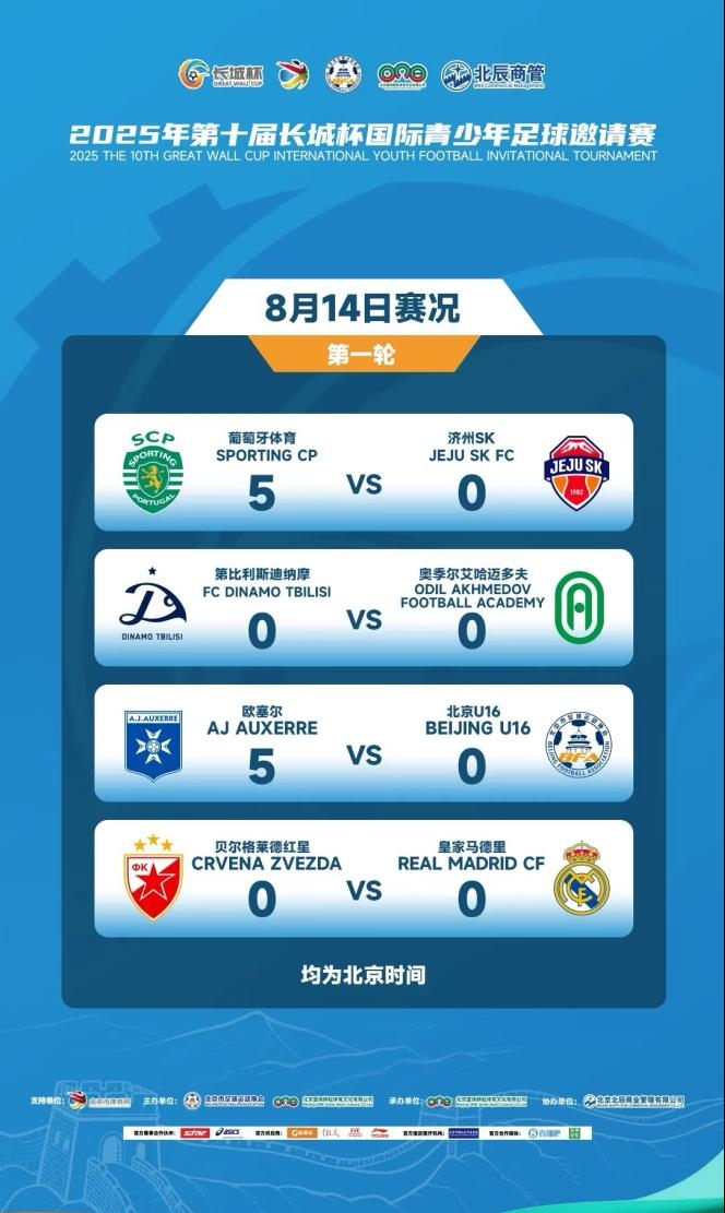 据悉,本届赛事蛊惑了包括皇家马德里、葡萄牙体育、欧塞尔、贝尔格莱德红星、第比利斯迪纳摩、奥季尔·艾哈迈多夫足球青训学院、济州SK以及人北京在内的8支优秀的外洋青训俱乐部参预,比赛将抓续至8月19日。在比赛时辰,来自列国的球员在绿茵场上伸开强烈角逐的同期,还将通过丰富的文化活动感受中华传统魔力。