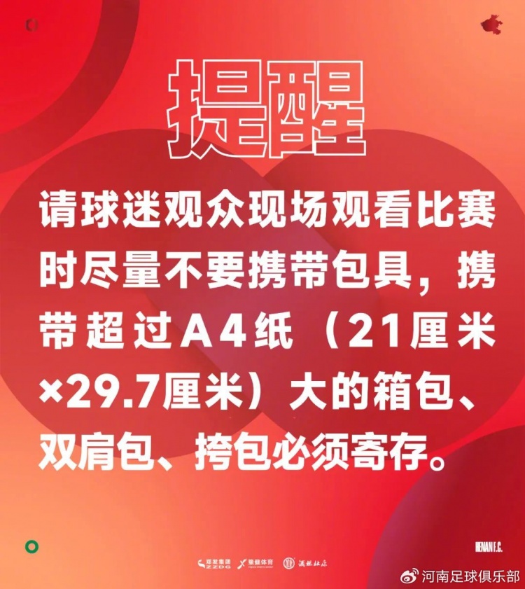 1、应河南赛区公安及反恐部门条款,球迷未佩戴身份证退却入场,其他证件无效。