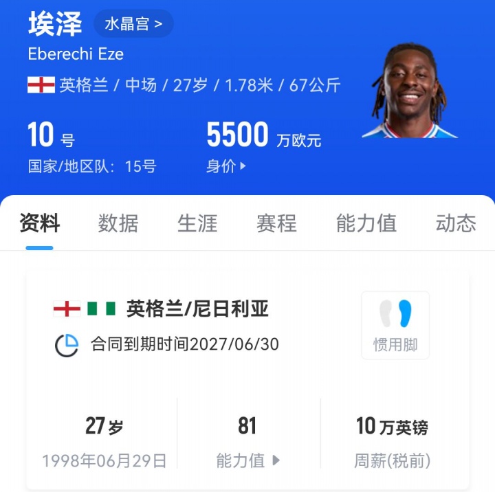 首轮进展优异的水晶宫,有可能在一个夏窗就失去队内三核:埃泽(5500万欧元)、沃顿(4500万欧元)、格伊(4500万欧元),这三东谈主恰恰是水晶宫队内身价最高的三东谈主。