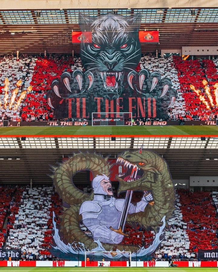 时隔多年重回英超的黑猫在首轮3-0完胜西汉姆联,俱乐部今天晒出了球迷制作的巨幅Tifo并配文:“咱们用我方的情势作念到了。”