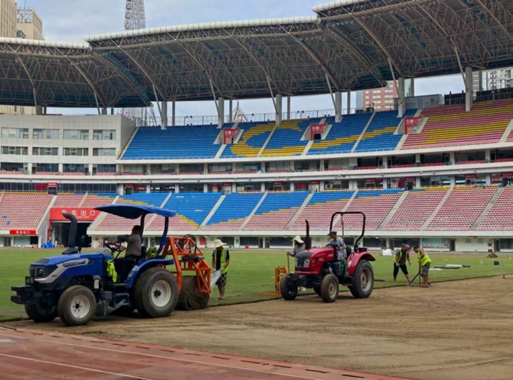湘媒:湖南省足球联赛长沙主场贺龙体育馆新草坪行将完成铺设