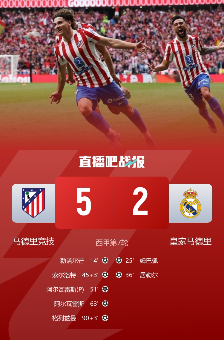 阿斯报点评这即是“格调”问题。皇马跑动最多的东说念主是巴尔韦德,距离为10.03公里,然而马竞有足足5东说念主比巴尔韦德还高,鉴识是:科克12.6公里、朱利亚诺-西蒙尼11.2公里、巴里奥斯11.1公里、阿尔瓦雷斯10.3公里和冈萨雷斯10.5公里。