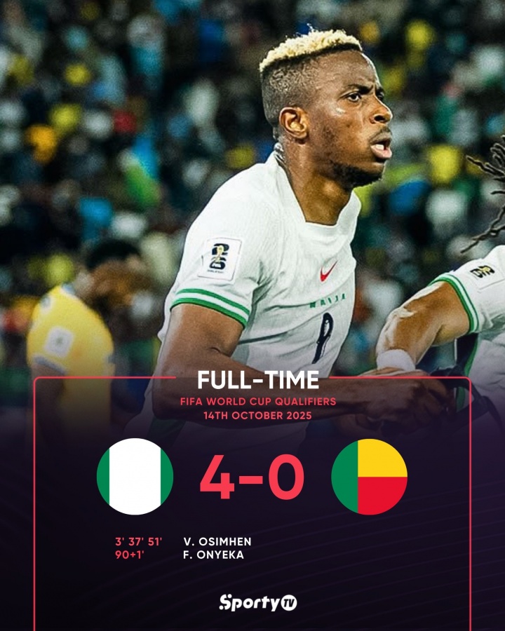 由于南非3-0慑服卢旺达,尼日利亚只能屈居C组第二,当今只能通过参与附加赛来争取2026全国杯的限额。