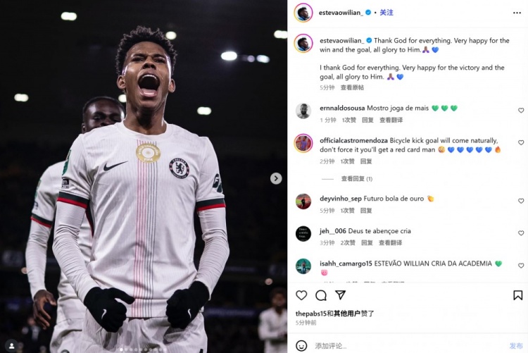 他也在赛后通过社媒晒出我方的庆祝照,并配文:“感谢天主赐予的一切。格外忻悦能赢得比赛并获得进球,一切荣耀归于祂。🙏🏽💙”
