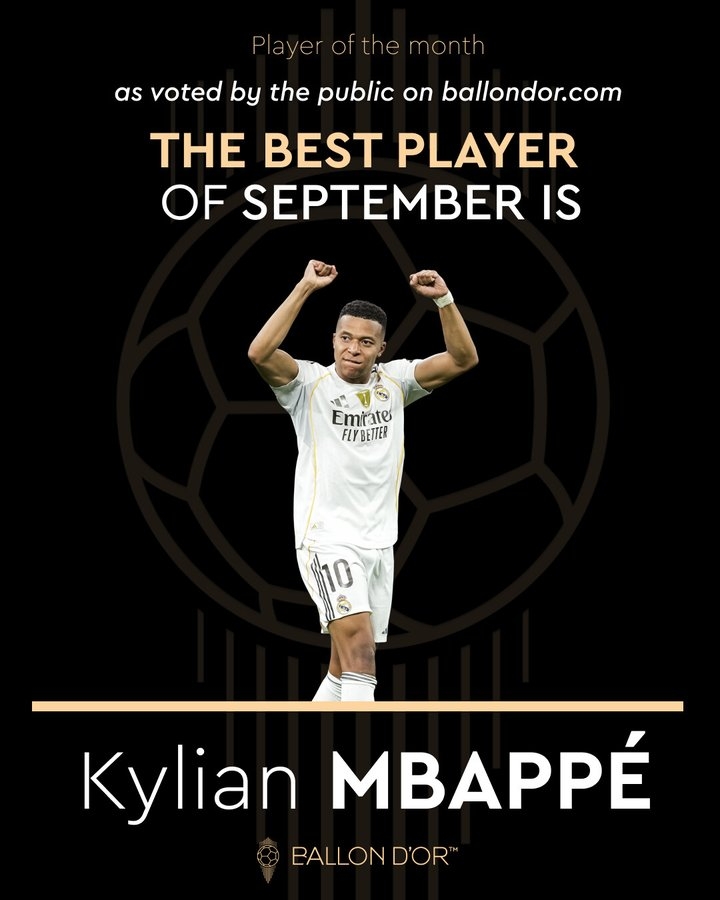 年青东说念主的第一个金球奖😂姆巴佩当选金球奖球迷票选9月最好球员