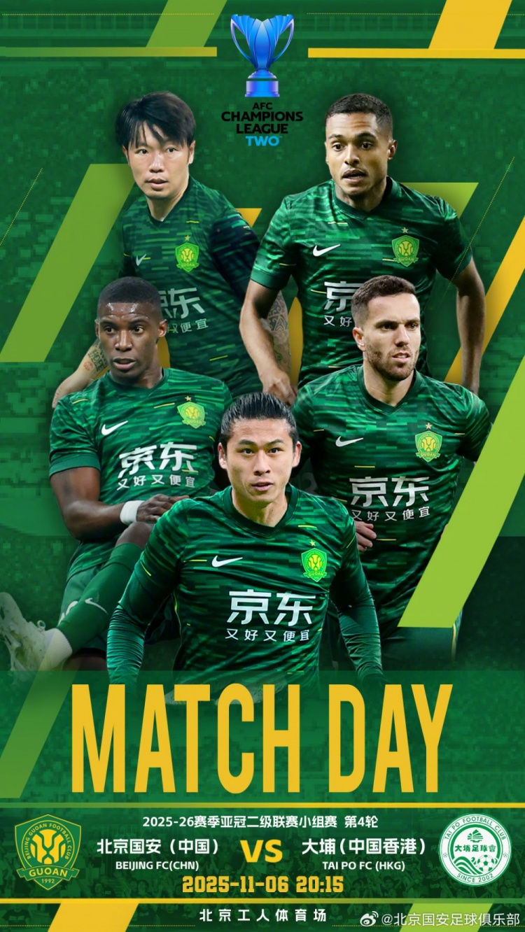 2025.11.06日20:15亚冠二级联赛小组赛 北京国安VS大埔